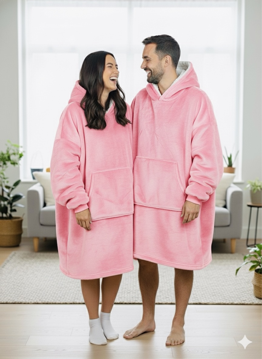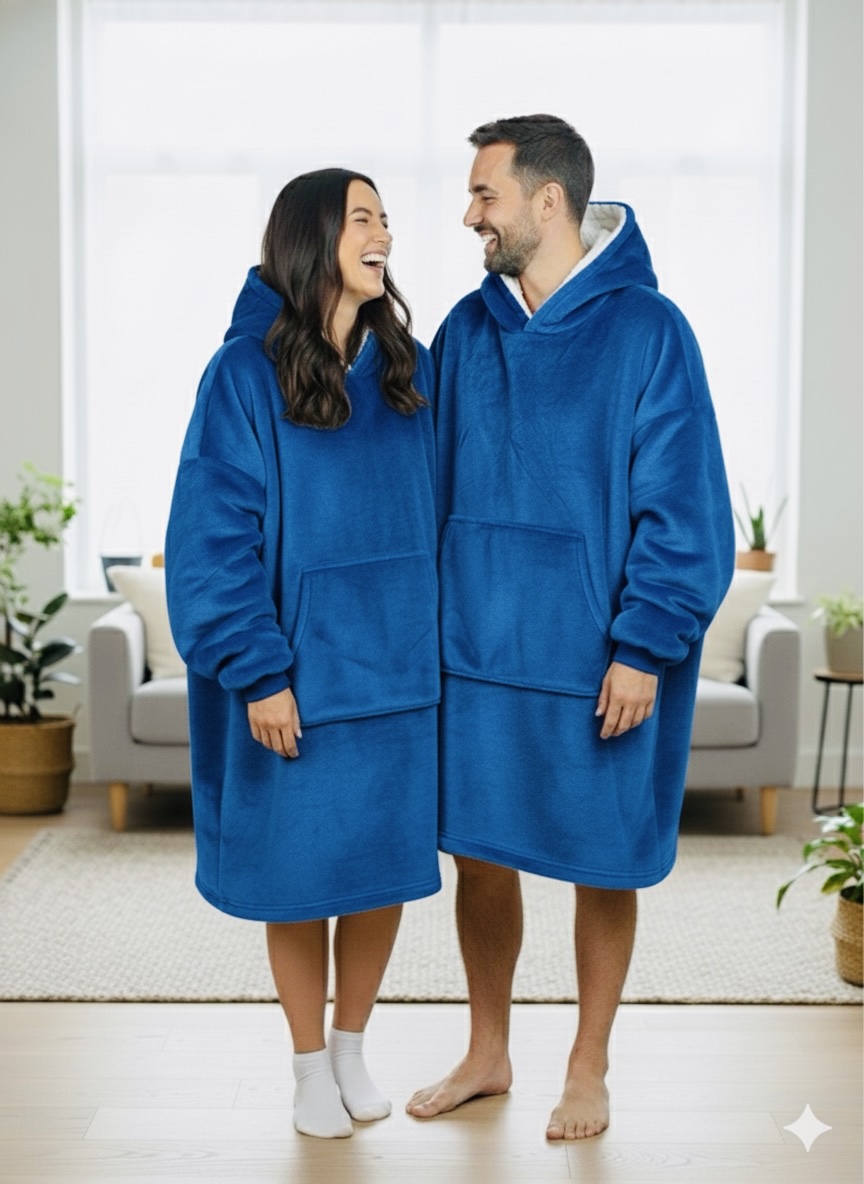 Cada maxisaco tiene capota, bolsillo frontal tipo canguro (para manos, control, celular o snacks 🙊) y telas peluditas por dentro y por fuera tipo piel de conejo y ovejero, que ayudan a mantener el calor y se sienten deliciosas al tacto.